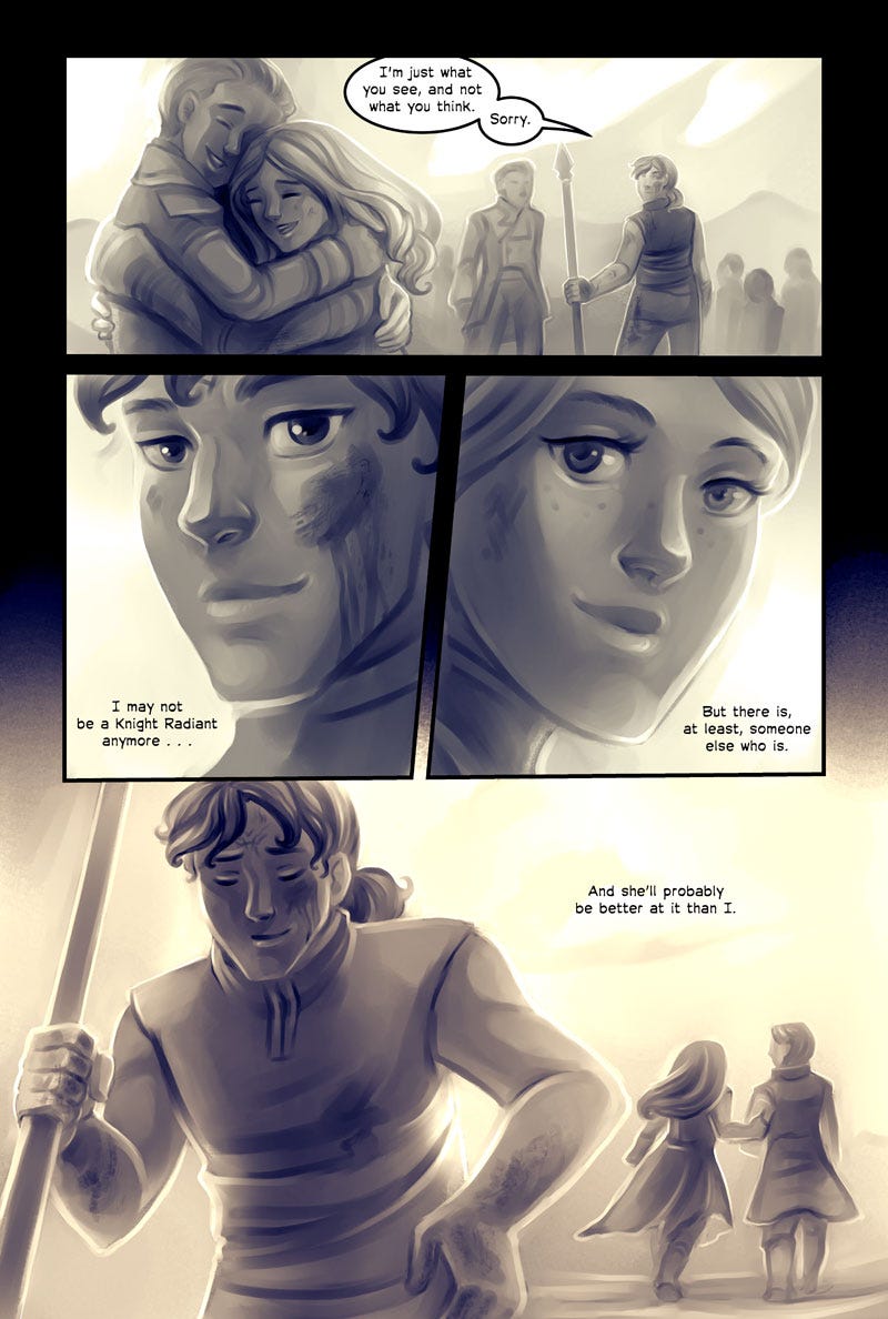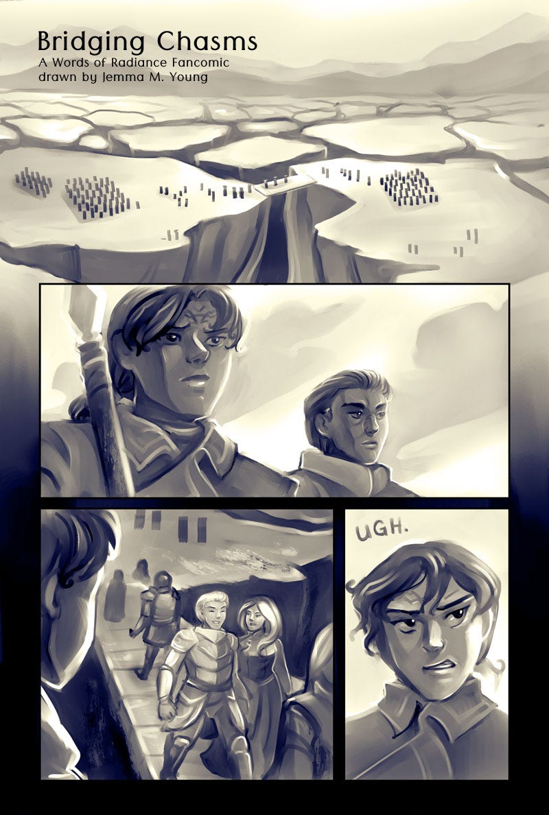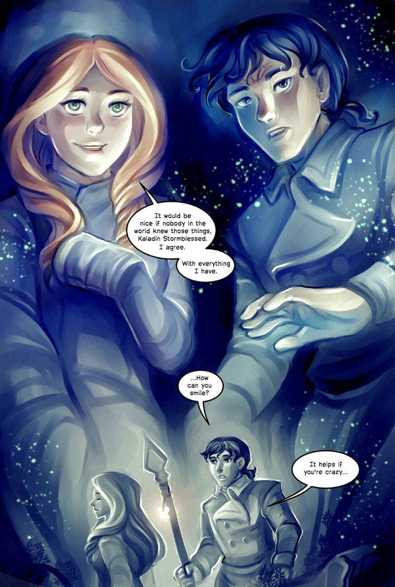 A little Stormlight Archive: Words of Radiance fancomic of Kaladin and Shallan in the Chasms.
