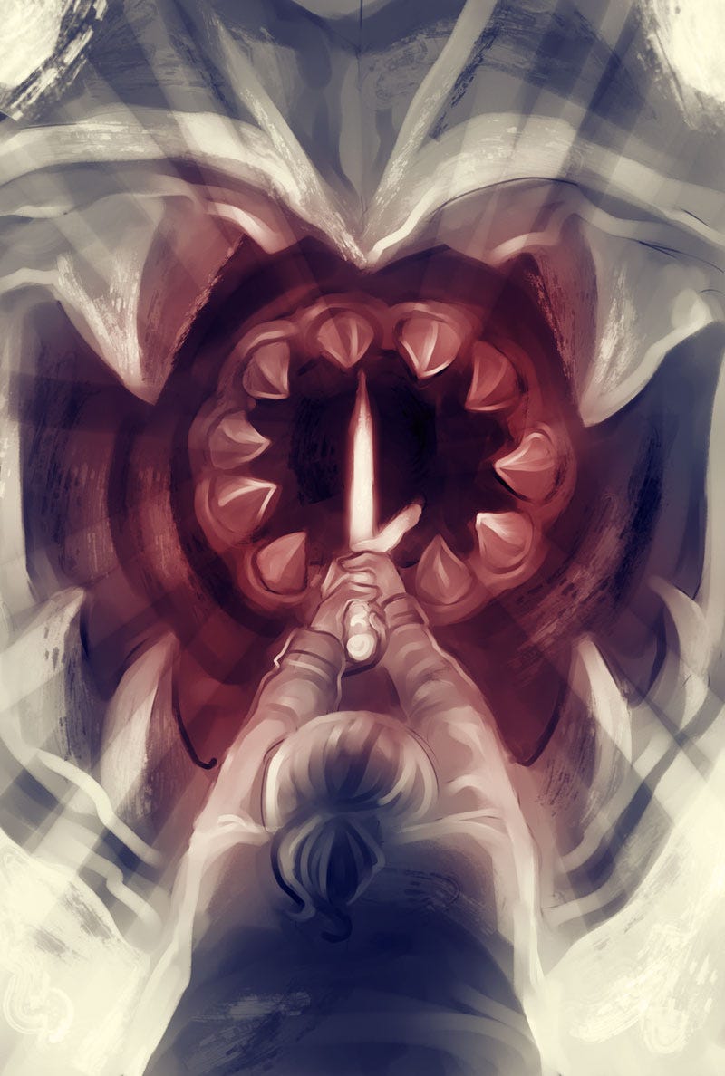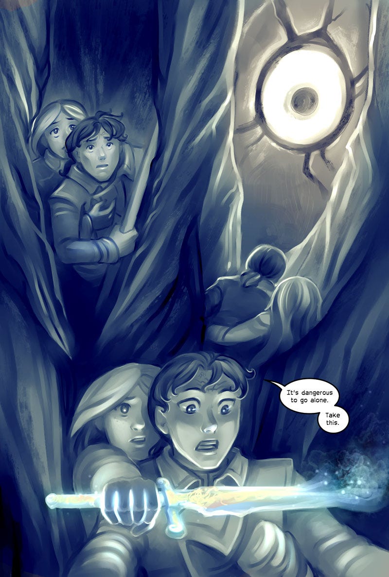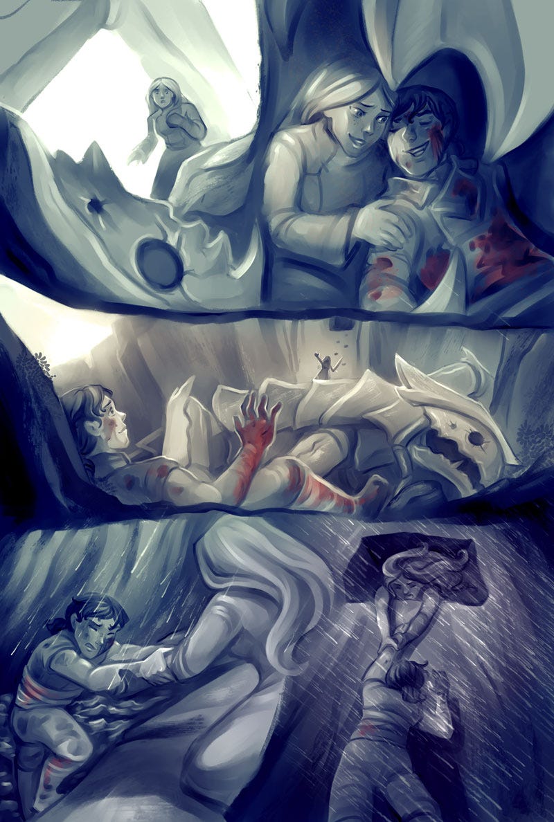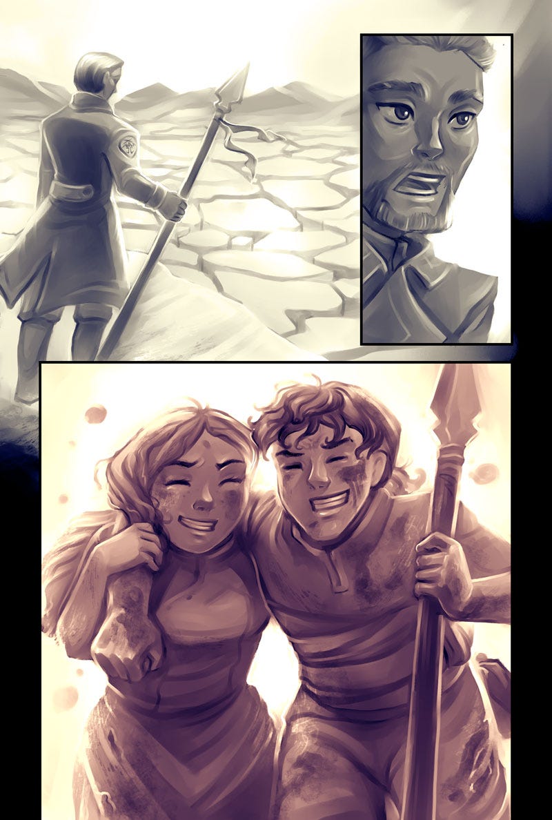 As such, I removed most of the dialogue and focused more on telling the story through visuals. I wanted the focus to be on the emotional weight and journey of these two characters and see if I could do that with as little dialogue as possible. This was the result, a 17 page comic with few words, and fewer panel borders. This is something I’m quite proud of and I hope that you enjoy this little homage to the most epic of fantasy novels of the decade.