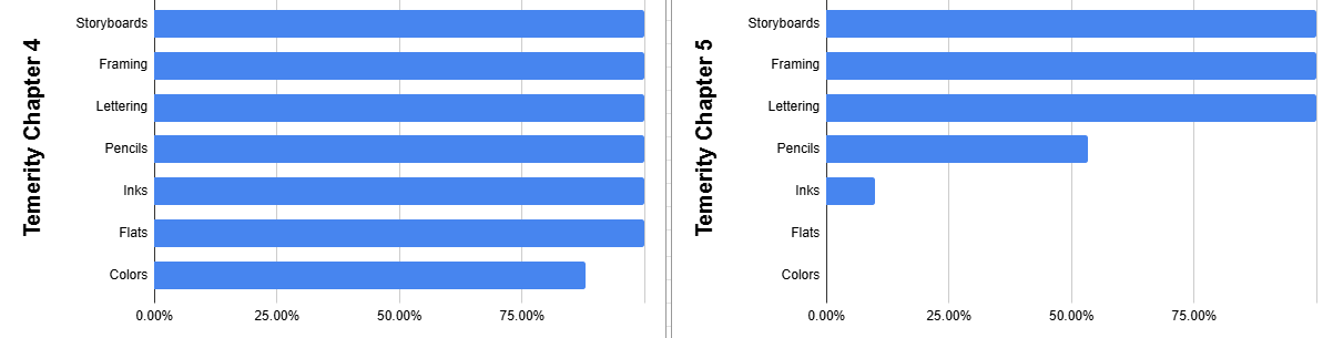 Progress on Temerity is going well! I’m almost done wrapping up final color edits on chapter 4 and chapter 5 is well into production. The line artist is working on the first 15 pages and has started inking. I’ve also sent the first page off to the colorist. Overall, I’m pleased with the progress of the project so far and I should be able to consistently update this comic over the summer with 2-4 pages posting every-other-week.
