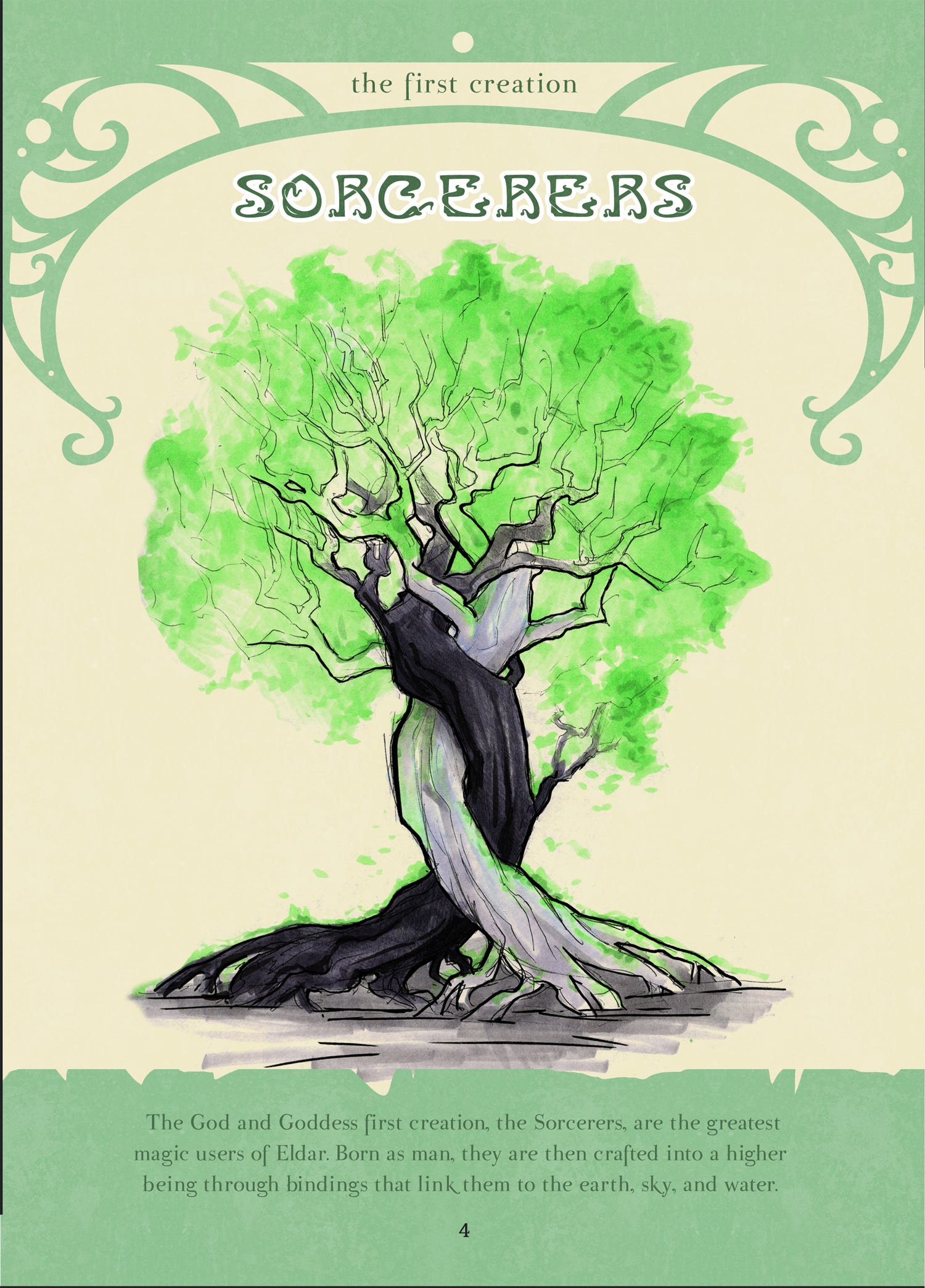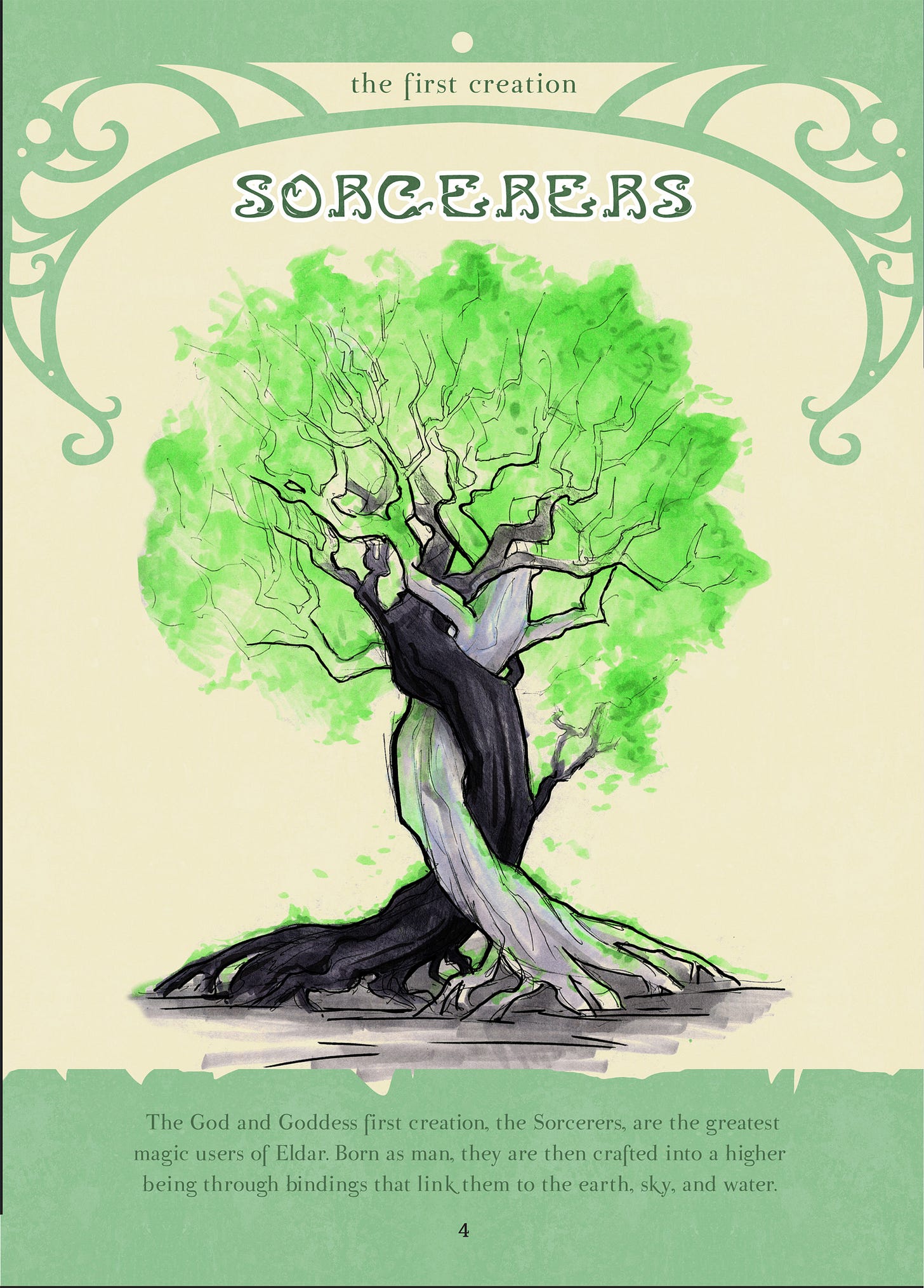 What’s interesting about this though, is I actually wrote some general information about the world from the Sorcerer’s perspective. The idea that the sorcerer’s were the first creation, then changelings, humans, elves, and then fairies is Sorcerer lore, but not the actual history of the world. The first people to inhabit the world were sorcerers, but all the races (other than fairies) are just split off from them, much like races in our own world. Changeling’s are just sorcerers with dark skin and a different magic system. And elves are just sorcerers with long pointy ears, and humans are short with round ears. But I guess that doesn’t seem as magical and cool. XD