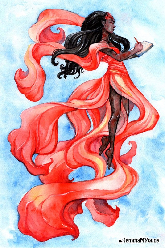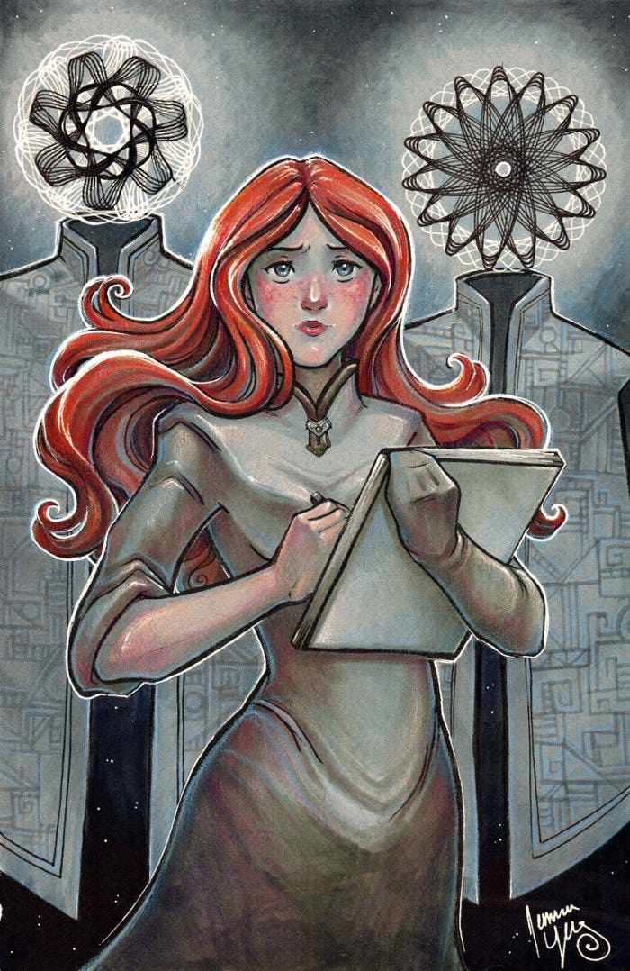 Shallan and the Cryptics - Traditional marker, pencil, and acrylic paint on toned paper