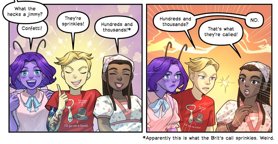 Chad Hardin is back doing the cover for this issue (see below—it’s incredible), and I’m offering my own variant cover featuring Naia and an illegal rain of hundreds and thousands.
