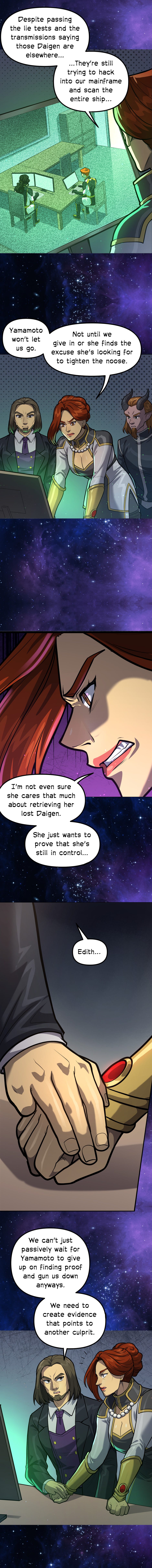 Awwww, yeaaah! That completes chapter 5 of Temerity! Whoooo! I hope you enjoyed this chapter and learning more about the Temerity crew. Looks like Edith’s got a plan that surely couldn’t go wrong.