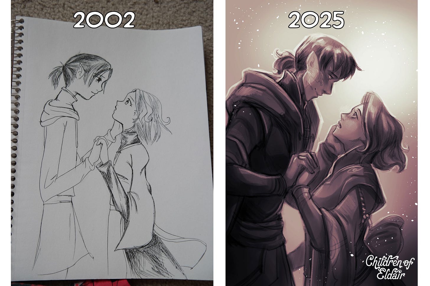 As the years passed by, my passion for Eldair came and went. I worked on other stories, developed other characters, but I always, inevitably, came back to this world that stole me away from my own. Koe and Embera grew with me through the depths of despair and illness. I couldn’t feel the right way, so they did it for me.