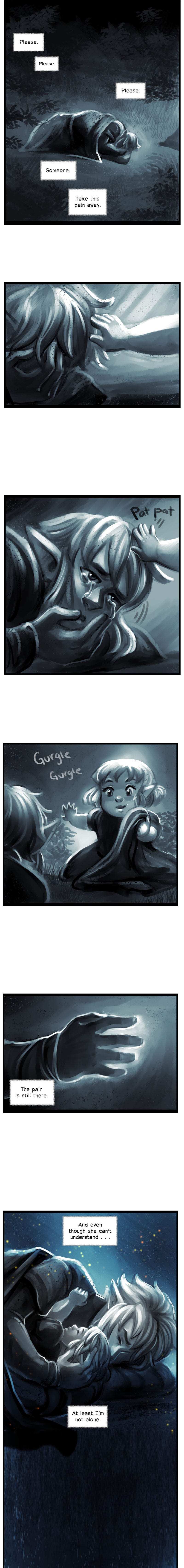 This particular interlude was inspired specifically by my dealing with postpartum depression. I remember spending days curled up, crying, unable to cope with the changes in my life. Just an incredible sadness that nothing could change. But there was my baby who did not care that I was broken. That I was overwhelmingly sad. They did not need to try and fix me. To figure out the problem. There was no judgement. In the end, I didn't have to suffer in sadness alone.